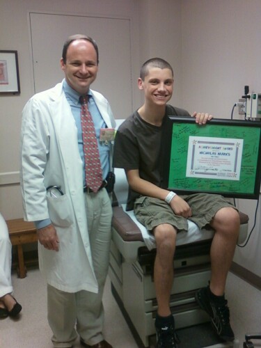 Nick and Dr. Hughes at M.D. Anderson Children’s Cancer Center in Houston on July 8.