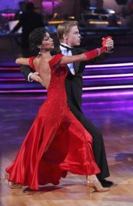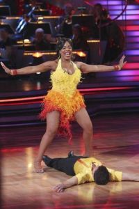 Niecy Nash, Jive: La Bamba! That movie made me cry so hard. I think I was about three when I first saw it, so I really had no idea what was going on, but I knew that a plane crashed and Lou Diamond Phillips was no more. I should probably watch that again sometime. This is a fast song, and a fast dance. They’re gonna have to really move! Hmmm, it’s a Jive with a little Latin flavor! It looks more like a Cha-cha to me. With kicks. Was it just me, or was that dance really long?