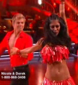 Nicole Scherzinger, Samba: When Nicole thinks Samba, she thinks Ricky Martin. However, “this is not the Brazilian dance party” she thought it was going to be. And she’s also become a little paranoid and crazy about the cameras and FREAKING me out. She’s getting like Barbara Streisand where you can only film her from one side. Odds are 1 to 2 Derek takes his shirt off. Another near perfect dance. This girl can’t be stopped! I bet someone is going to sabotage her in the Swing marathon. Of course, Len hated it.
