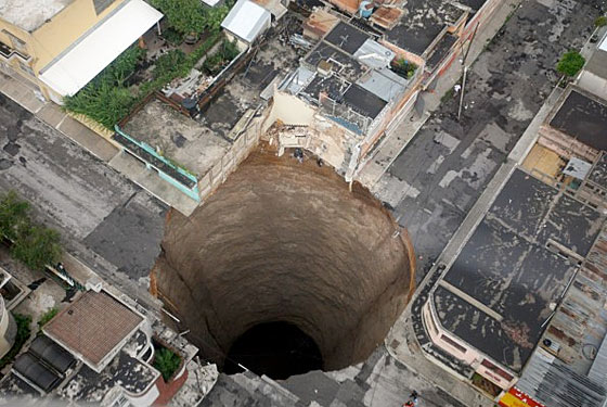 Apparently, this sinkhole in Guatemala City ate an entire building over the weekend. In one gulp. It’s like me and a Chipotle burrito. Between this, that unpronounceable volcano and the oil spill (alright, that was man’s fault really) it’s getting too scary to go outside!