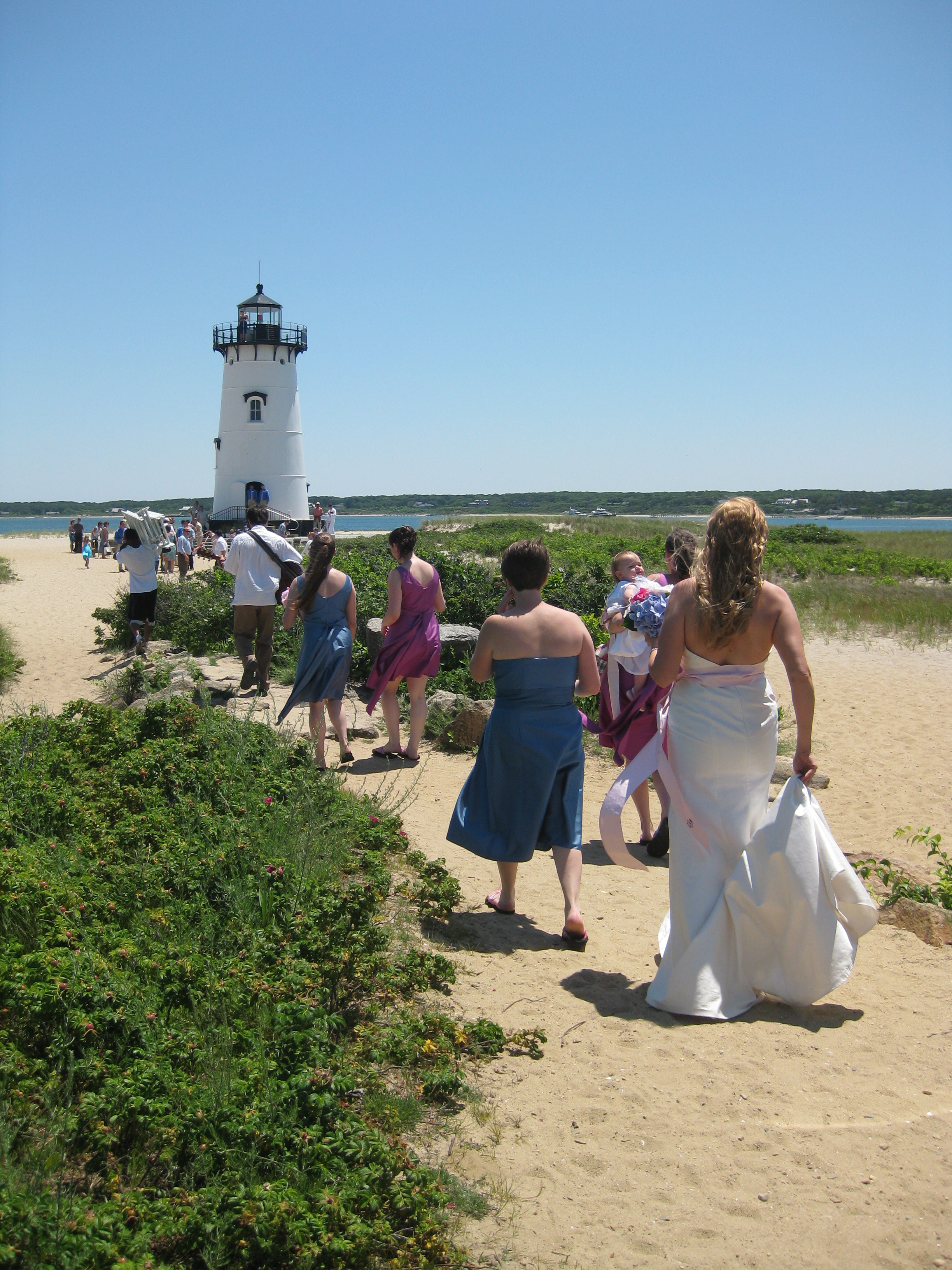 We used to vacation in Edgartown when I was little, right on the Harbor, and when we entered the village center, everything came rushing back to me. I wanted to go to the bookstore inside that old house, I wanted to get 11 heaps of ice cream at Mad Martha’s. I wanted to walk out to the lighthouse. Since we were on a health kick and couldn’t carry home the amount of books I wanted to buy, the lighthouse was the best option. It wasn’t five minutes after I told Katie that I definitely want to have a small wedding at the Edgartown lighthouse that bridesmaids and a beautiful bride were rushing past us down the sandy path, to be married on the lighthouse steps. Ahhh-mazing. Katie may or may not have cried (no she didn’t, I’m just teasing!).