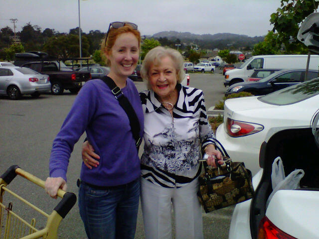While on a visit to the supermarket, her sister Claire met Betty White! Just strolling in the parking lot! Because in California, famous people are everywhere and do their own grocery shopping.