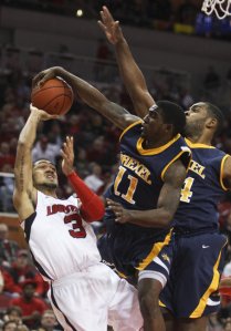 Drexel became the first visiting team to earn a win in the new arena – The Old Fashioned Way – by playing D, rebounding, and controlling the tempo. Drexel had 20 more rebounds than Louisville, and held them without a field goal for the last 8 minutes. It was a thing of beauty to watch (live – and 3 more times since last week). They ran their offense with poise, defended with passion, and just flat out “Played Hard.”