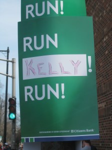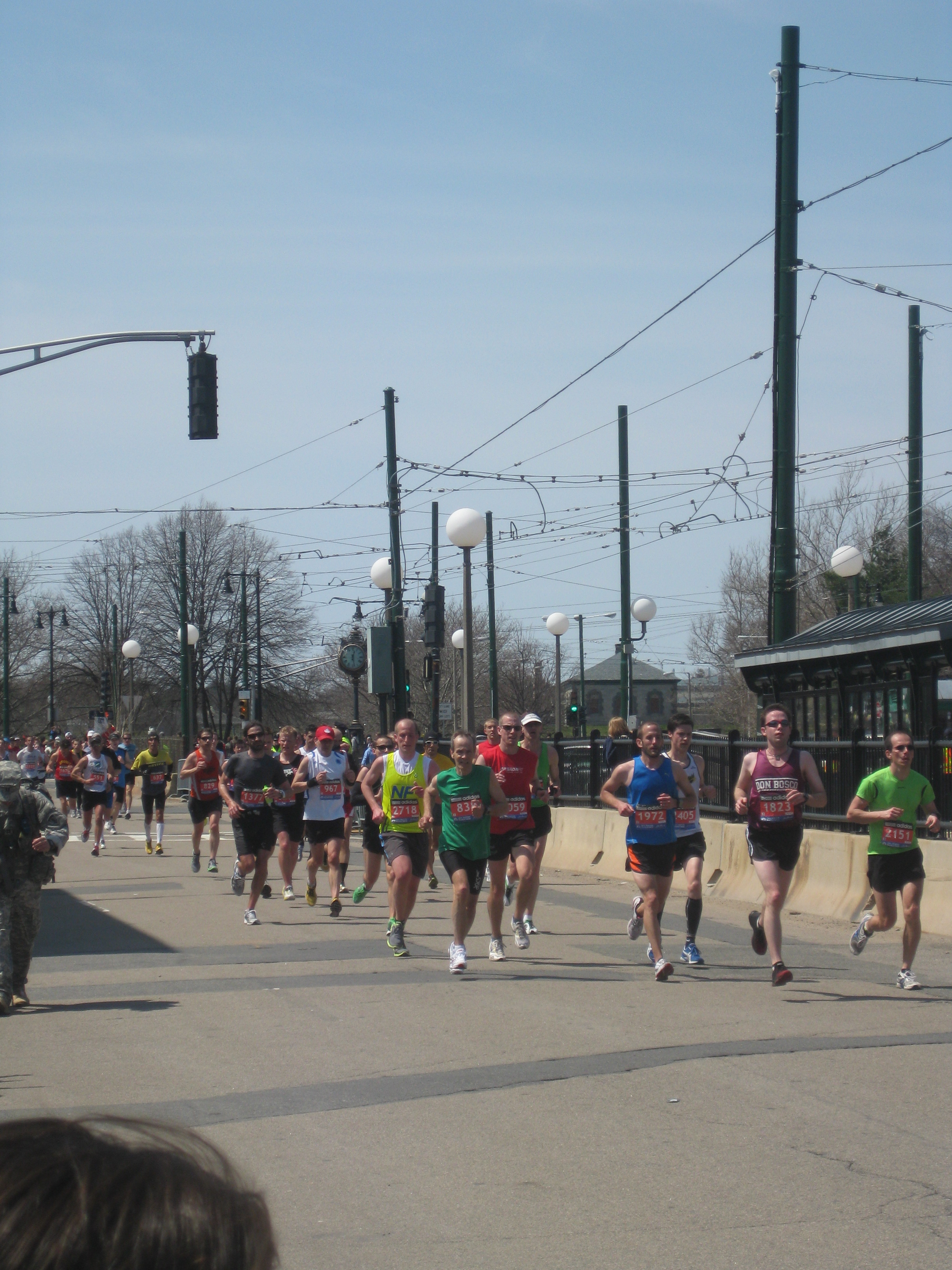 Outside in Cleveland Circle, we saw the elite male runners pass, I think the last time the American man was near the lead. I don’t know if you guys know this about me, but I’m a professional road race cheerer. It was one of my minors in college. For my efforts, I racked up three “thumbs ups,” a head nod in my general direction, and praise from a woman who was waiting to run the last 5 miles of the marathon with her friend Christy. On top of that, some guy 20 yards behind me became my cheering doppelganger and said everything I did except 10 seconds later. And, some guy totally pulled his hamstring right in front of me and I screamed “you will NOT stop here…you WILL continue to run,” until he continued to run. There’s a good chance he died somewhere along Beacon Street. But I just wanted him to realize his potential.