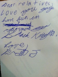 So I came home from work one day to find this gem on the refrigerator (placed ever so delicately under “Idaho, no U Da Ho” spelled out in magnet alphabet letters). My dad had been down at my aunt and uncle’s house and left with this most precious gift. There’s also an inscription on the back: