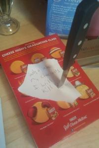 This is NOT my handwriting. I know how to spell CHEEZ-ITS !