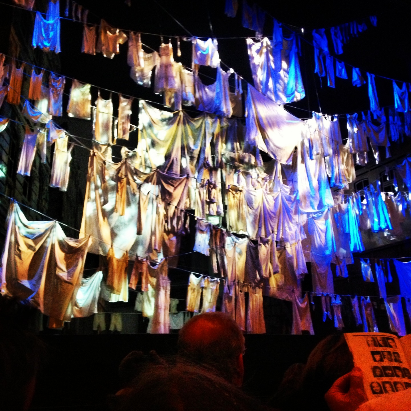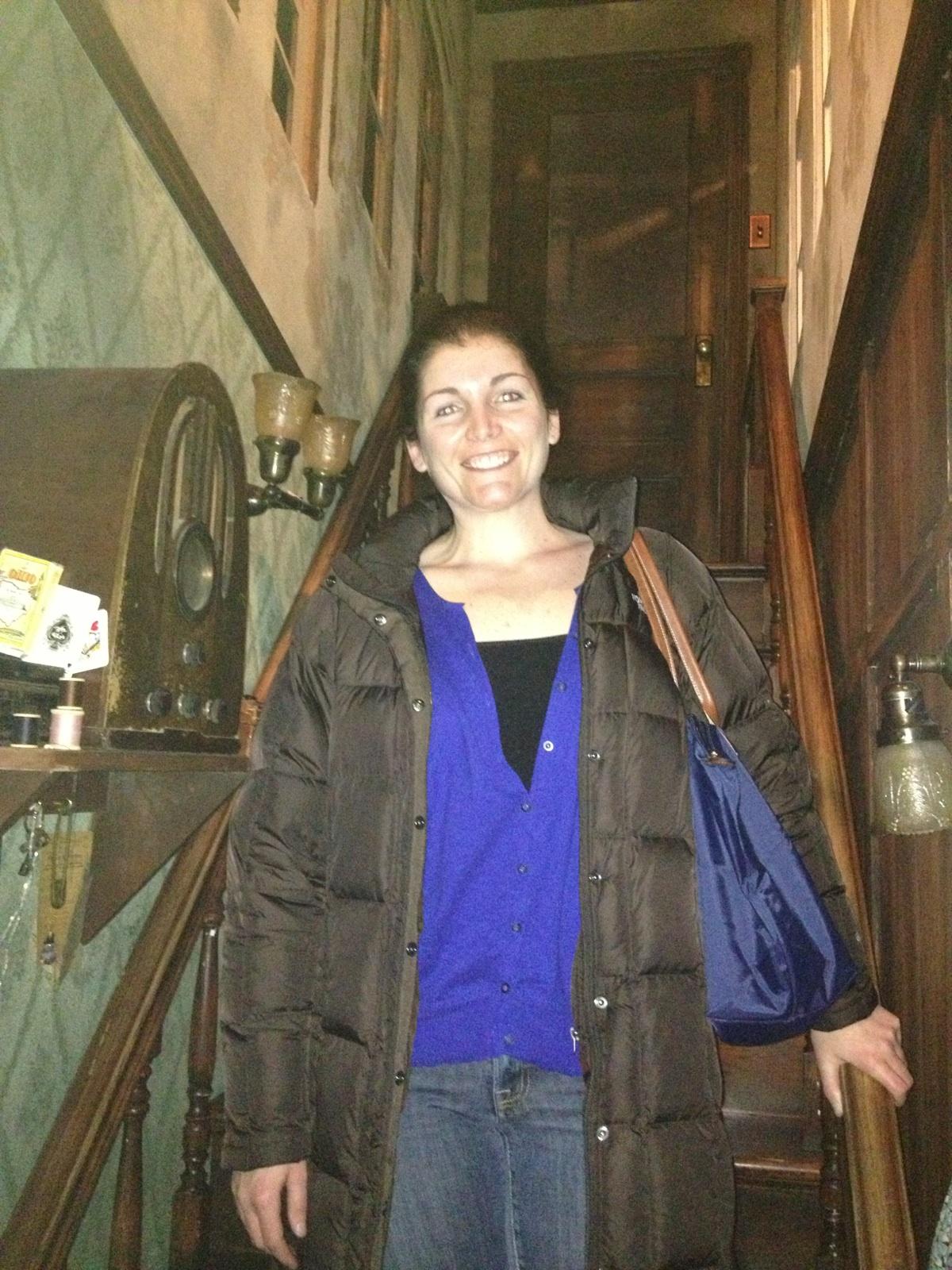 The carpenter showed us all of backstage – where the kids in the cast are tutored, the dressing rooms, the costume office, the wig room, each wing of the stage where the sets are kept. I would have thought it was amazing if I had been able to fully take it all in without the thought of the identity theft that I was sure was occurring AT THAT MOMENT running through my head. But then all of a sudden I moved past the creaky stair set of Mrs. Hannigan’s orphanage and I was in the middle of the stage. Looking out into hundreds of seats. With a spotlight on. I was standing right where Annie and Daddy Warbucks ended the show. It was something I never in a million years thought would happen. And it was pretty cool.